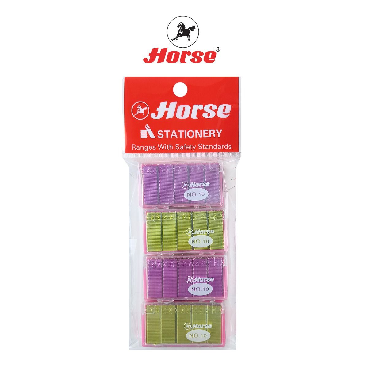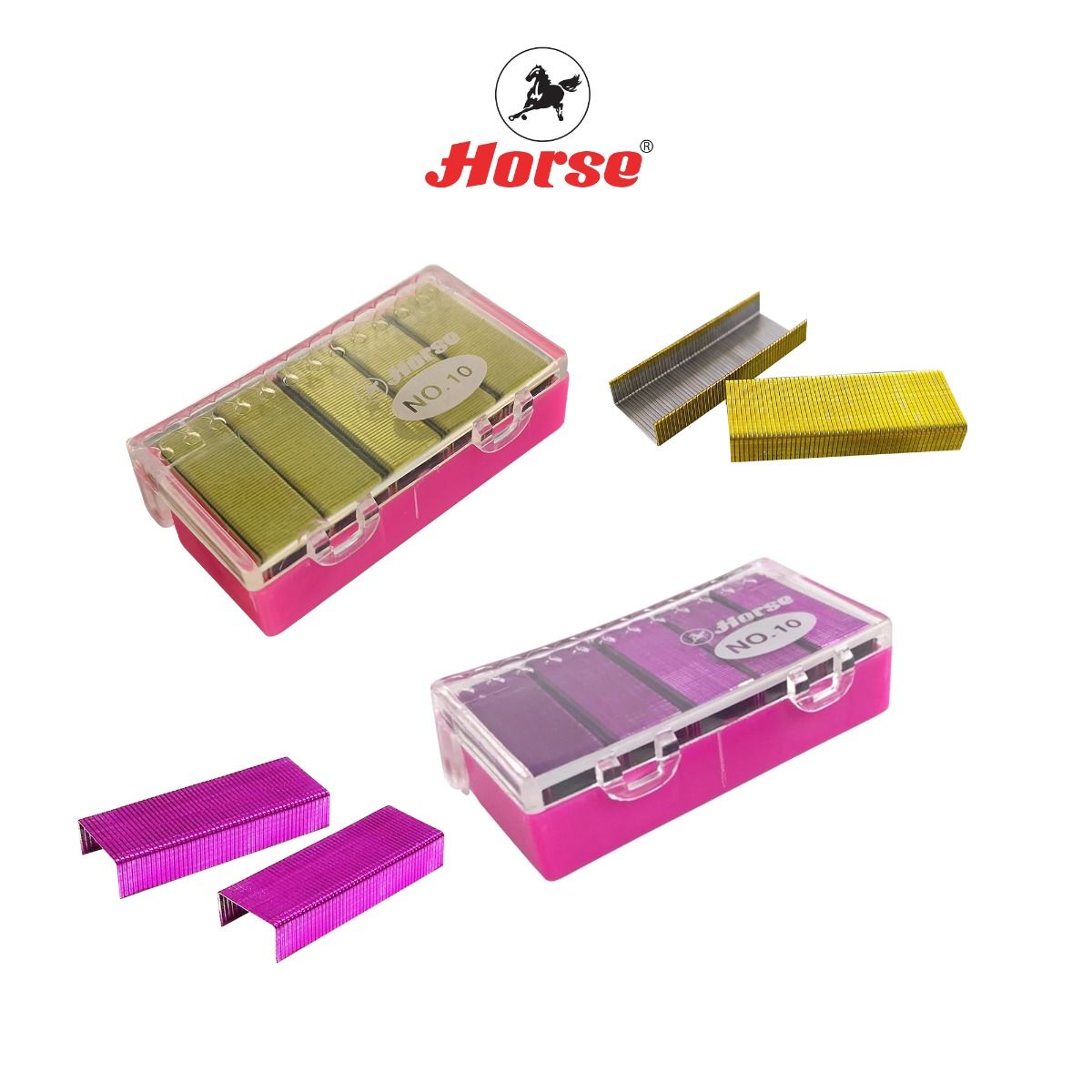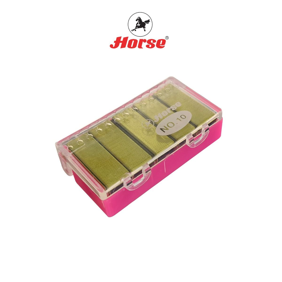 HORSE ตราม้า ลวดเย็บกระดาษ #10 แบบสี กล่องพลาสติก 1X4 กล่อง/แพ็ค