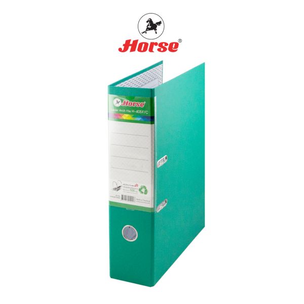 Horse ตราม้า แฟ้มสันกว้าง 3 นิ้ว ก้านยกปกกระดาษหุ้มPVC H-405 ตราม้า ขนาด F/C คละสี จำนวน 1 เล่ม - สีเขียวเข้ม