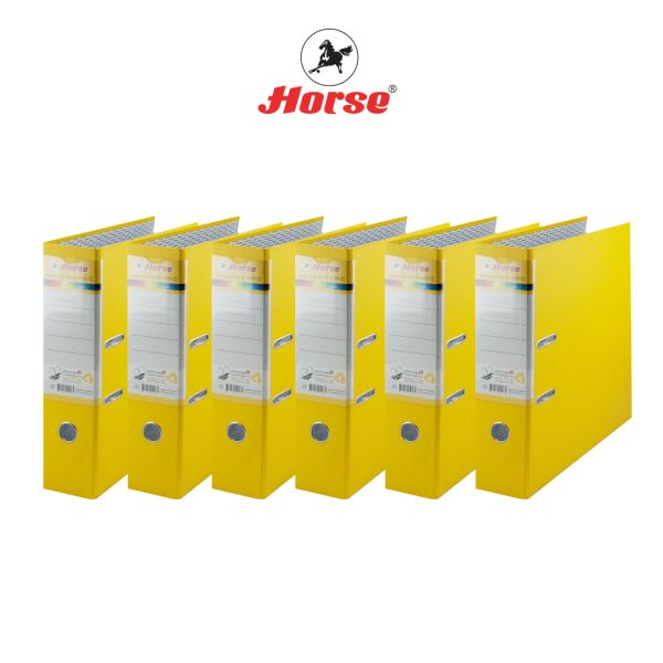 Horse (ตราม้า) แฟ้มสันกว้าง 3 นิ้ว ก้านยกปกกระดาษ หุ้มPVC H-405 ตราม้า ขนาด F/C คละสี แพ็คละ 6 เล่ม จำนวน 1 แพ็ค - สีเหลือง