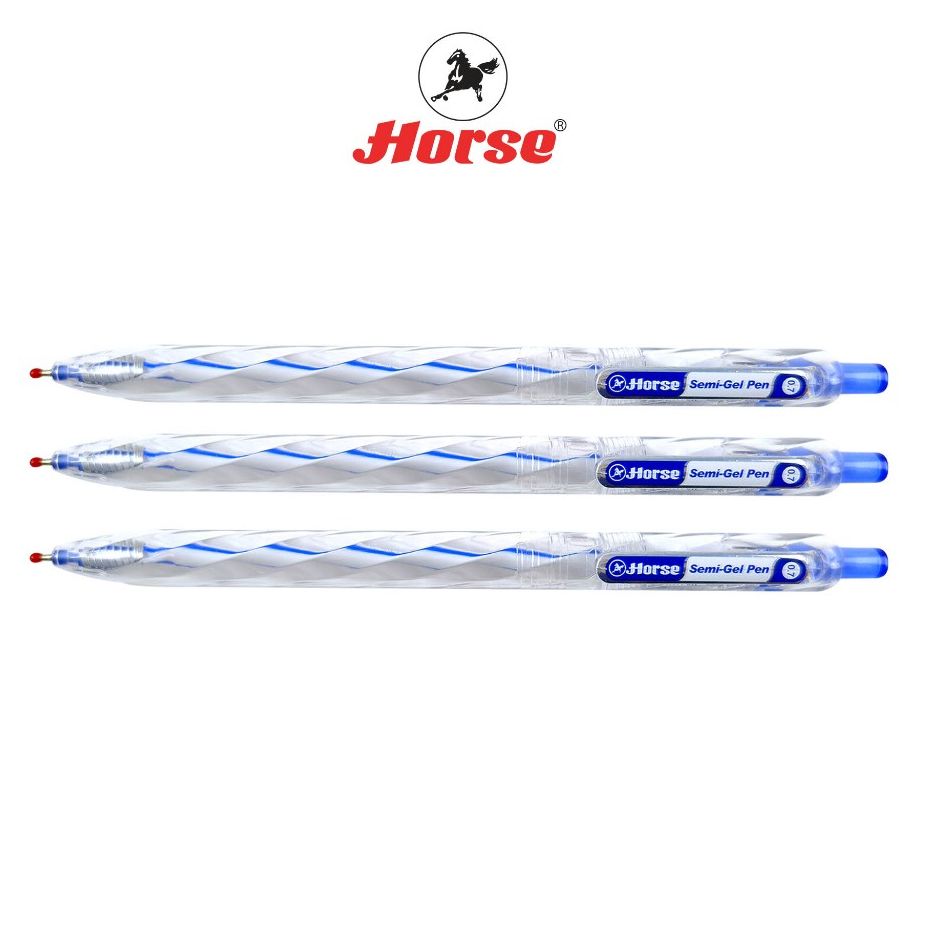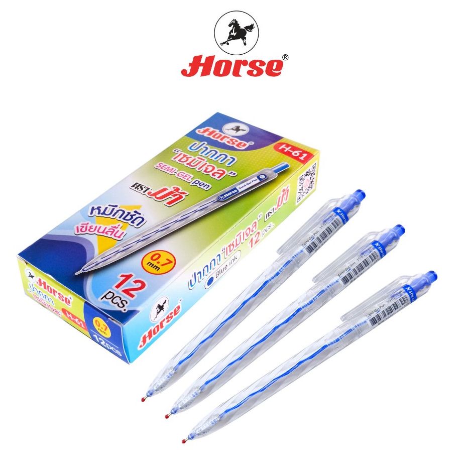 Horse (ตราม้า) ปากกา SEMI-gel แบบกด ด้ามใสลายเกรียว H-61 ตราม้า 0.7 มม. บรรจุ 12 ด้าม/กล่อง