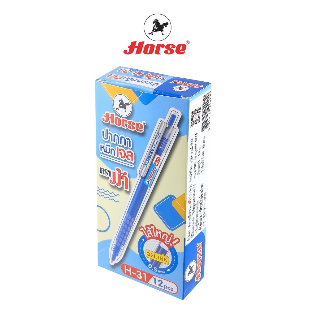HORSE ตราม้า ปากกาเจล 0.5mm Gel ink PEN รุ่น H-31 จำนวน 12 ด้าม/กล่อง