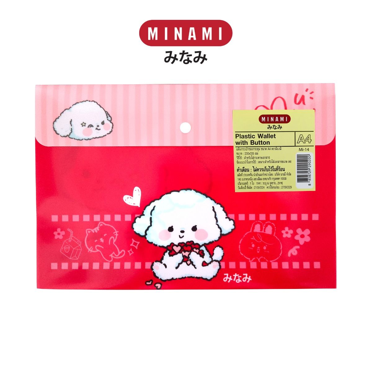 MINAMI (มินามิ) แฟ้มกระเป๋าซองกระดุม ขนาด A4 ตรามินามิ ลายการ์ตูน MI-14 จำนวน 1 ใบ